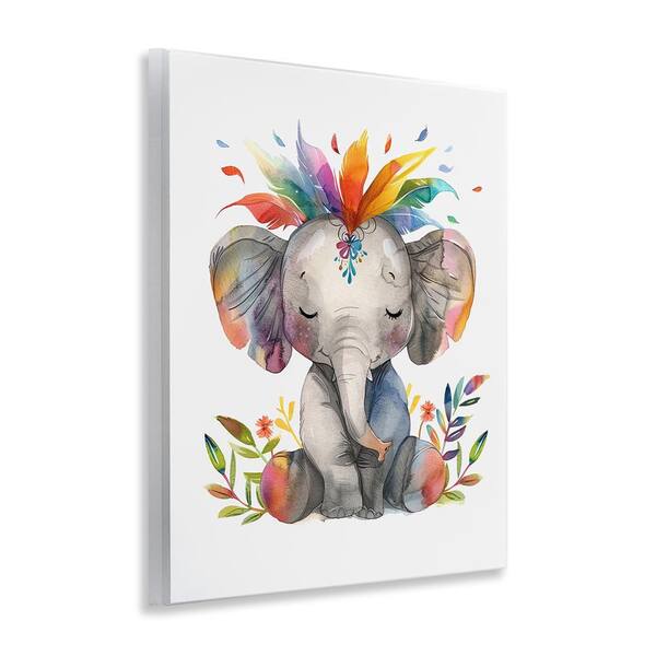 Rainbow Blooms Elephant by LSR Design Studio Unframed Animal Graphic Art Print 14 in. x 11 in.