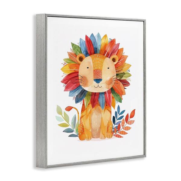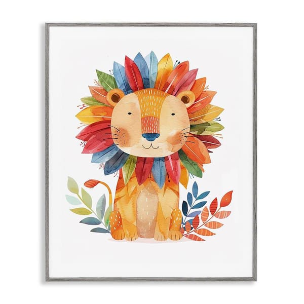 Rainbow Blooms Lion by LSR Design Studio Gray Framed Animal Giclee Art Print 30 in. x 24 in.
