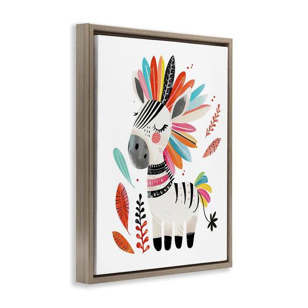 Rainbow Blooms Zebra by LSR Design Studio Brown Floater Frame Animal Graphic Art Print 31 in. x 25 in.