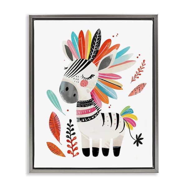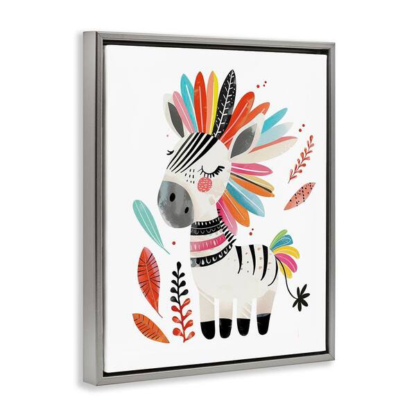 Rainbow Blooms Zebra by LSR Design Studio Gray Floater Frame Animal Graphic Art Print 31 in. x 25 in.