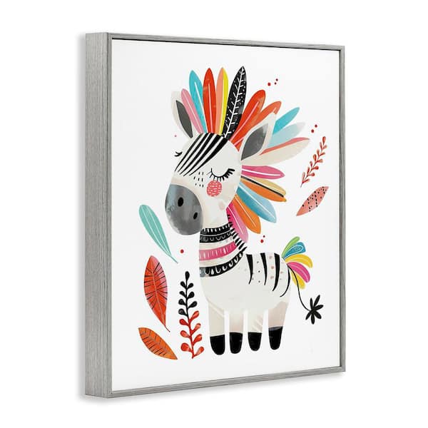 Rainbow Blooms Zebra by LSR Design Studio Gray Framed Animal Giclee Art Print 20 in. x 16 in.