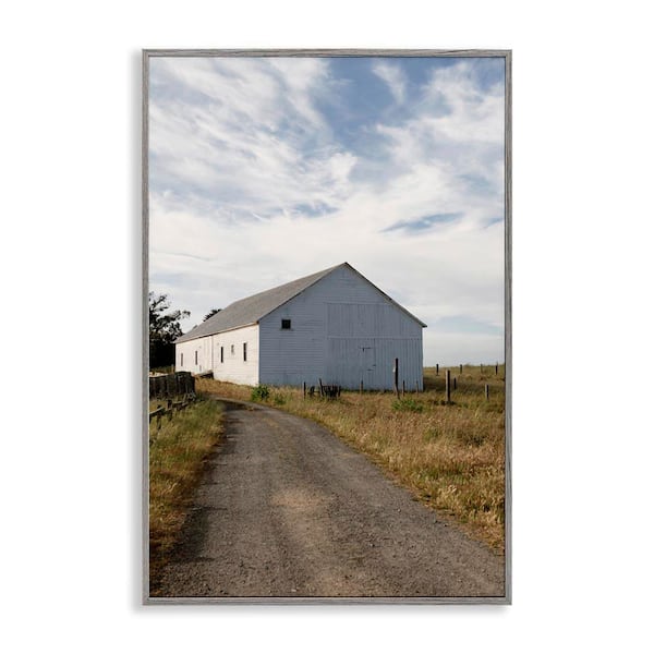 Receding Road to Barn by Crystal Lynn Collins Gray Framed Nature Giclee Art Print 30 in. x 20 in.