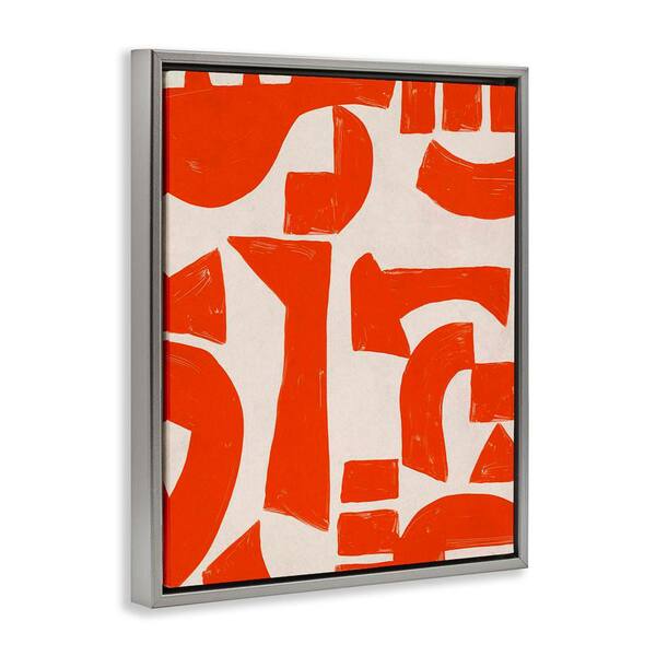 Red Asymmetrical Shapes by June Erica Vess Gray Floater Frame Abstract Graphic Art Print 31 in. x 25 in.