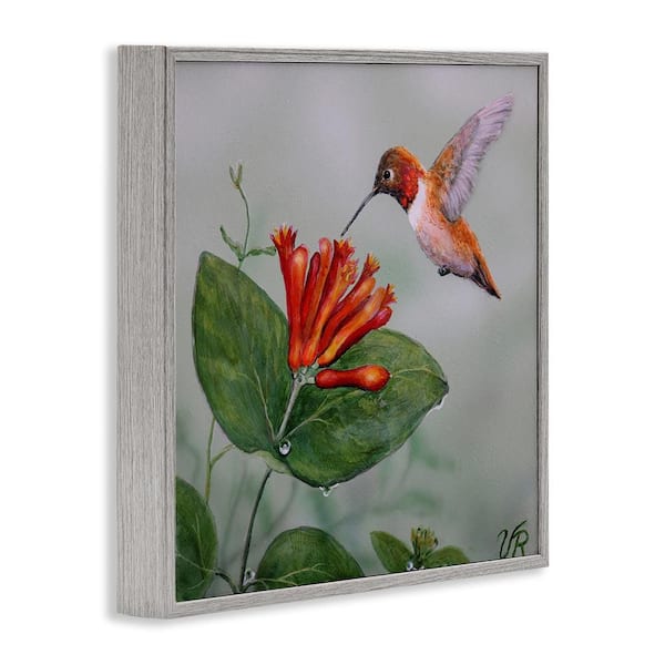 Red Hummingbird & Flower by Valerie Rogers Gray Framed Animal Giclee Art Print 24 in. x 24 in.