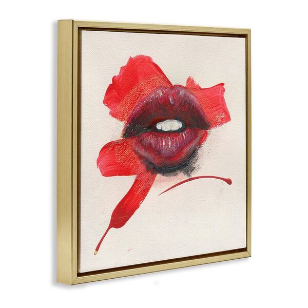 Red Lips Paint Streak by Daniel Houston Gold Floater Frame People Graphic Art Print 18 in. x 18 in.