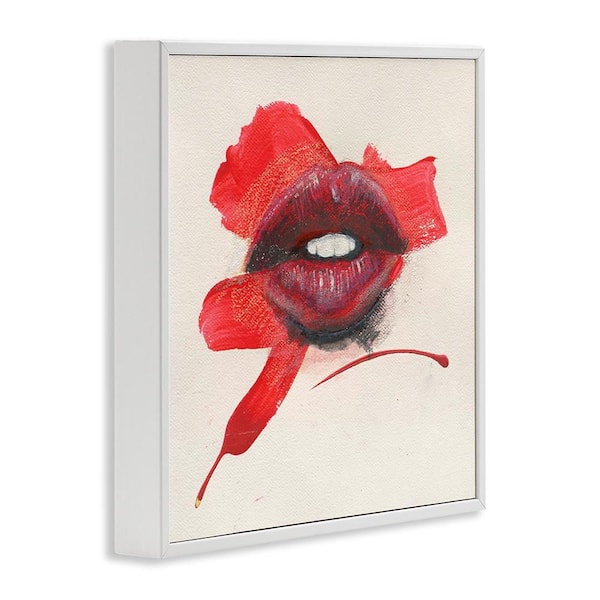 Red Lips Paint Streak by Daniel Houston White Framed People Giclee Art Print 24 in. x 24 in.
