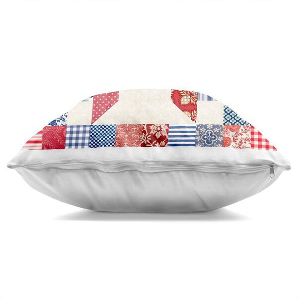 Red and Blue Traditional Quilt Pattern Red Abstract Polyester 18 in. x 18 in. Throw Pillow