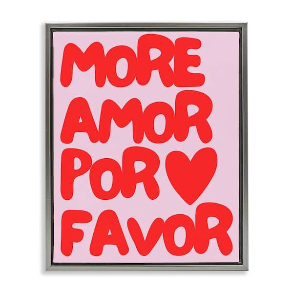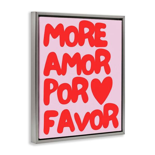 Red and Pink More Amor by House of Lulu Gray Floater Frame Typography Graphic Art Print 31 in. x 25 in.