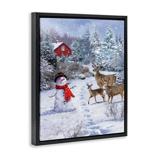 Reindeer and Snowman Landscape by Jason Kirk 1-Piece Floater Frame Graphic Print Nature Poster Art Print 21 in. x 17 in.