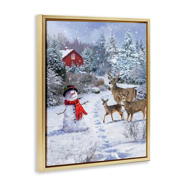Reindeer and Snowman Landscape by Jason Kirk 1-Piece Floater Frame Graphic Print Nature Poster Art Print 31 in. x 25 in.