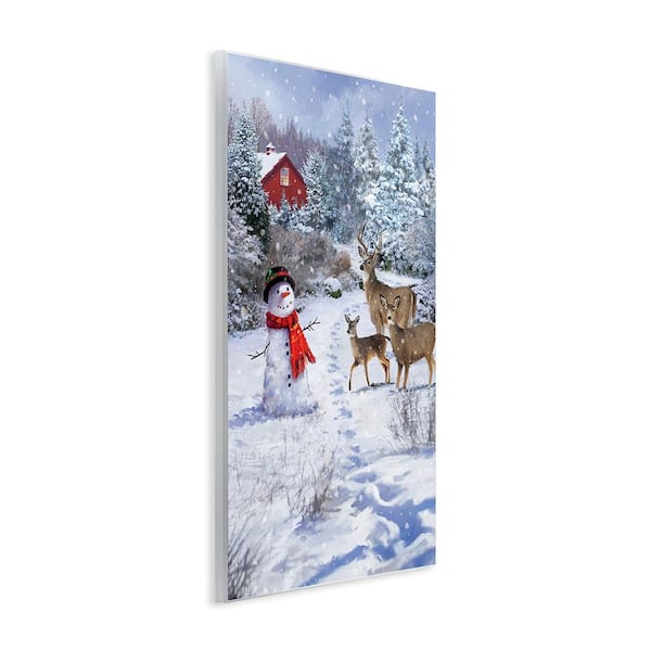 Reindeer and Snowman Landscape by Jason Kirk 1-Piece Unframed Graphic Print Nature Poster Art Print 15 in. x 10 in.