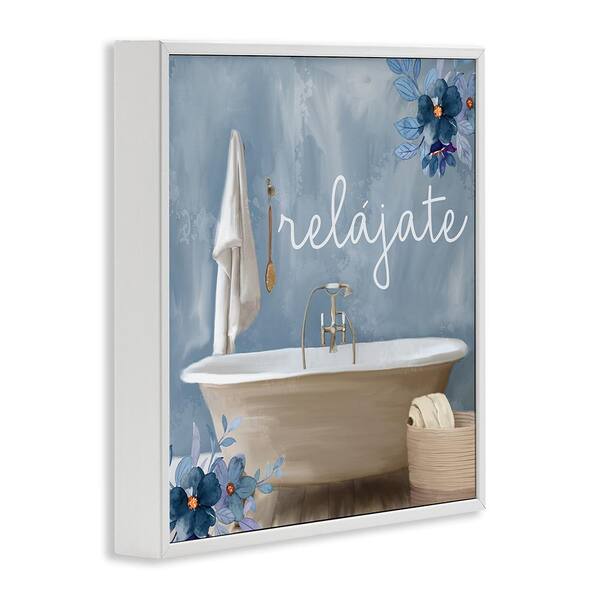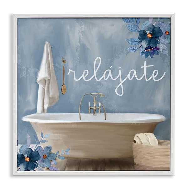 Relax with Bathtub by Kim Allen White Framed Typography Giclee Art Print 12 in. x 12 in.