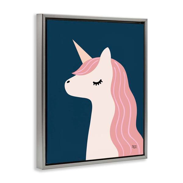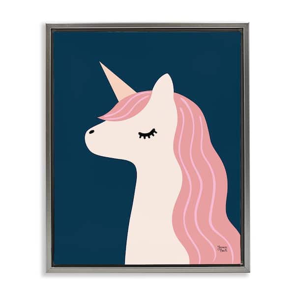Relaxed Unicorn on Blue by Jessica Beck Gray Floater Frame Fantasy Graphic Art Print 31 in. x 25 in.