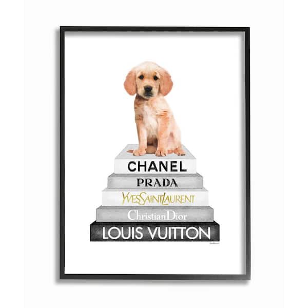 "Resting Puppy on Glam Fashion Icon Bookstack" by Amanda Greenwood Framed Animal Wall Art Print 11 in. x 14 in.