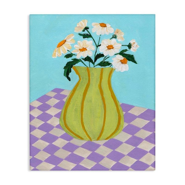 Retro Checkers Vase by Nikita Jariwala Unframed Nature Graphic Art Print 48 in. x 36 in.