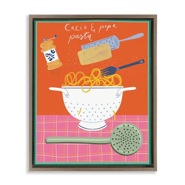 Retro Italian Pasta Meal by Jo Reid Brown Floater Frame Food Graphic Art Print 21 in. x 17 in.