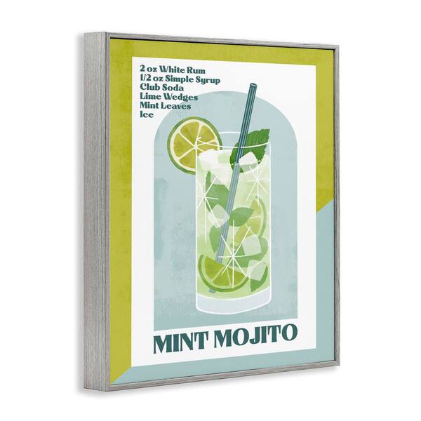 Retro Mint Mojito Recipe by Deane Beesley Gray Framed Food Giclee Art Print 20 in. x 16 in.