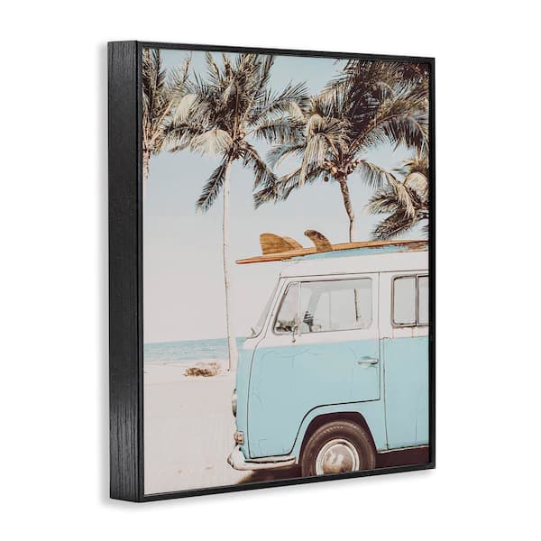Retro Surfboard and Van by LSR Design Studio Black Framed Sports Giclee Art Print 14 in. x 11 in.