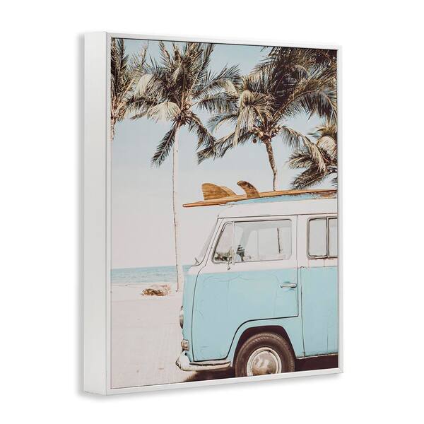 Retro Surfboard and Van by LSR Design Studio White Framed Sports Giclee Art Print 30 in. x 24 in.