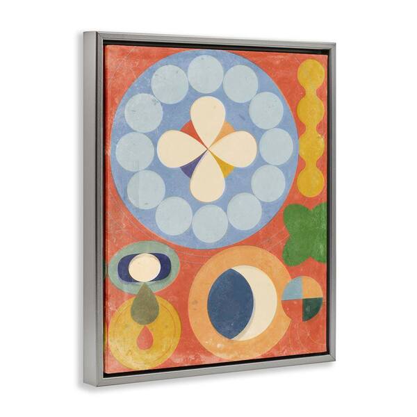 Retro Symbolic Shapes by Victoria Barnes Gray Floater Frame Abstract Graphic Art Print 21 in. x 17 in.