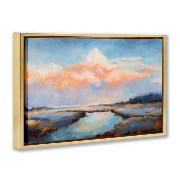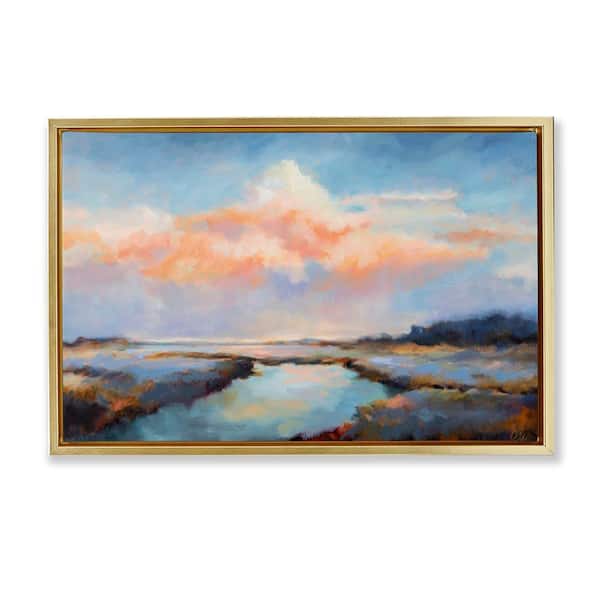 River with Pastel Clouds by Odile Gold Floater Frame Nature Graphic Art Print 21 in. x 31 in.