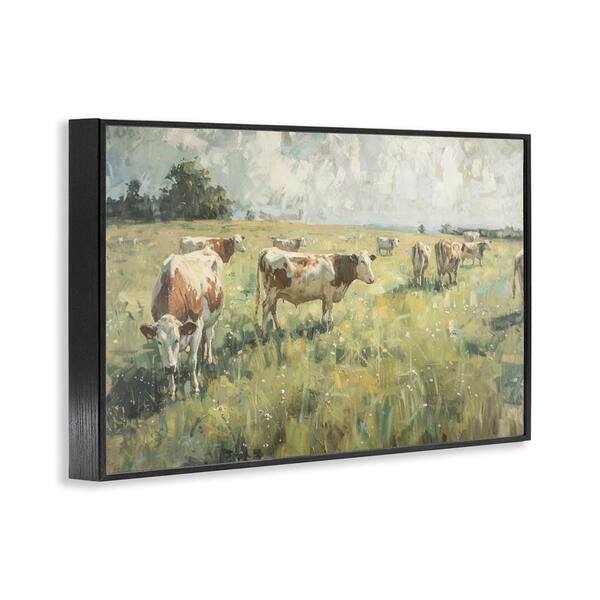 Roaming Cows in Grasslands by LSR Design Studio Black Framed Nature Giclee Art Print 20 in. x 30 in.