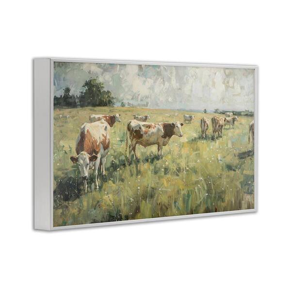 Roaming Cows in Grasslands by LSR Design Studio White Framed Nature Giclee Art Print 20 in. x 30 in.