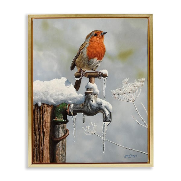 Robin Bird and Winter Scene by Steve Burgess 1 Piece Floater Frame Graphic Print Animal Poster Art Print 31 in. x 25 in.