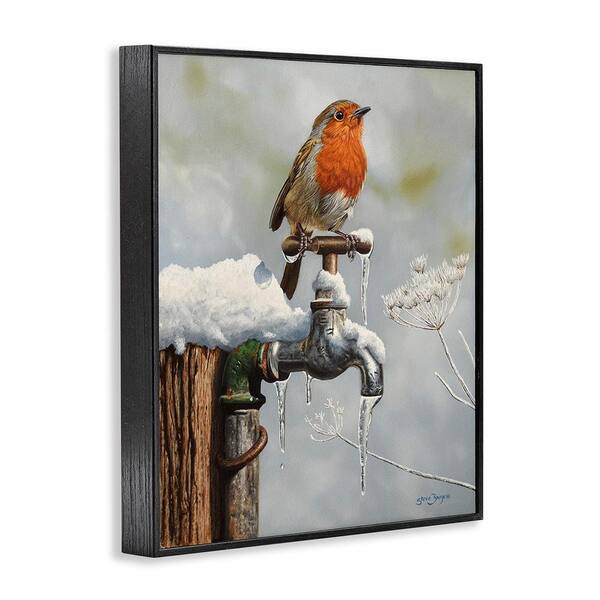 Robin Bird and Winter Scene by Steve Burgess 1-Piece Framed Graphic Print Animal Poster Art Print 14 in. x 11 in.