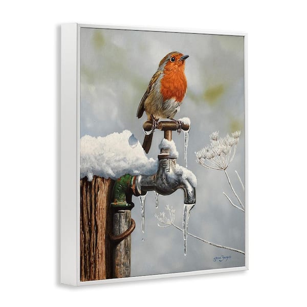 Robin Bird and Winter Scene by Steve Burgess 1 Piece Framed Graphic Print Animal Poster Art Print 30 in. x 24 in.