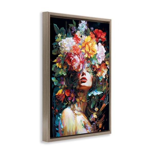 Rose Bedecked Woman by Leon Devenice Brown Floater Frame Nature Graphic Art Print 31 in. x 21 in.