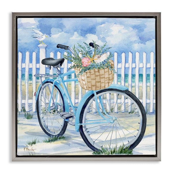Rosemary Beach Bicycle by Paul Brent Gray Floater Frame Typography Graphic Art Print 18 in. x 18 in.