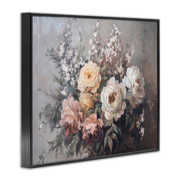 Roses & Peonies on Gray by Petal Prints Design Black Framed Nature Giclee Art Print 11 in. x 14 in.