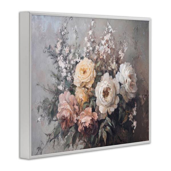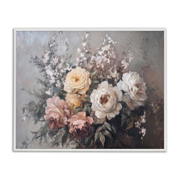 Roses & Peonies on Gray by Petal Prints Design White Framed Nature Giclee Art Print 16 in. x 20 in.