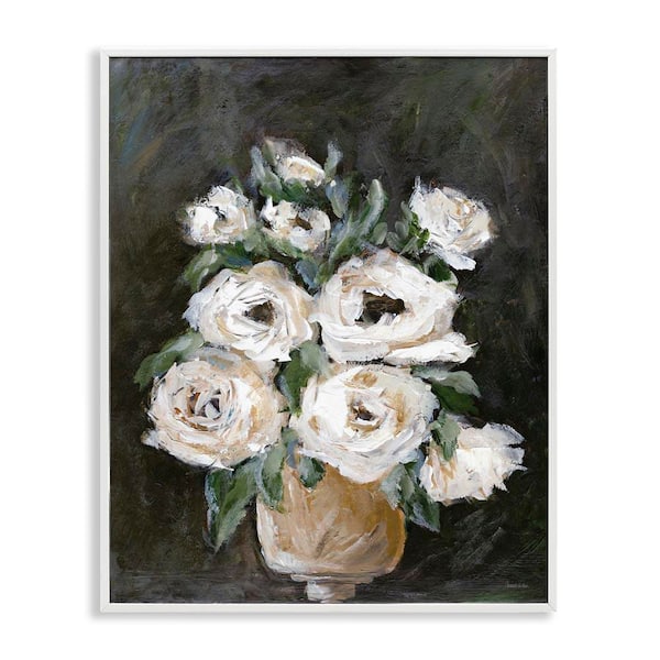 Roses on Black Still Life by Amanda Hilburn White Framed Nature Giclee Art Print 20 in. x 16 in.
