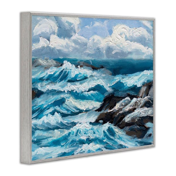 Rough Sea Waves Splash by Melissa Wang Gray Framed Coastal Giclee Art Print 16 in. x 20 in.