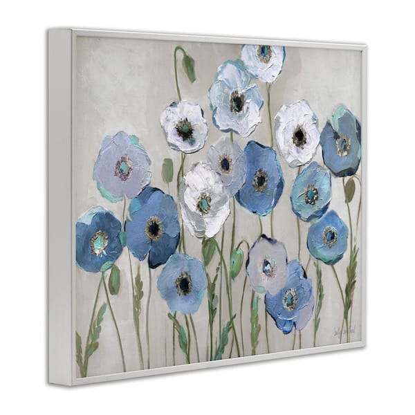 Round Blue and White Poppies by Sally Swatland White Framed Nature Giclee Art Print 24 in. x 30 in.