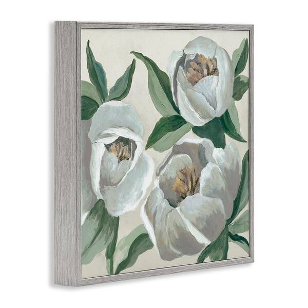 Round White Peonies by Jacob Q Gray Framed Nature Giclee Art Print 24 in. x 24 in.