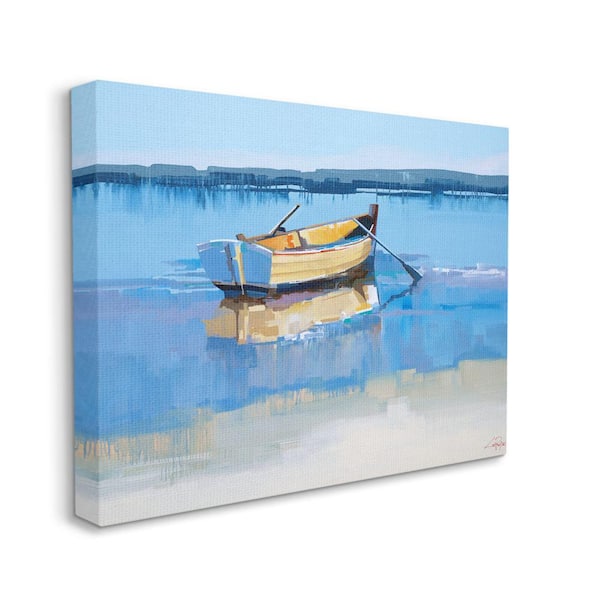 Row Boat on Blue Coastal Shore Beach Landscape By Craig Trewin Penny Unframed Print Nature Wall Art 36 in. x 48 in.
