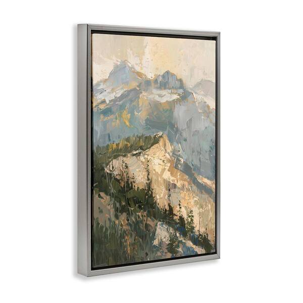 Rugged Mountains View by Petal Prints Design Gray Floater Frame Nature Graphic Art Print 25 in. x 17 in.