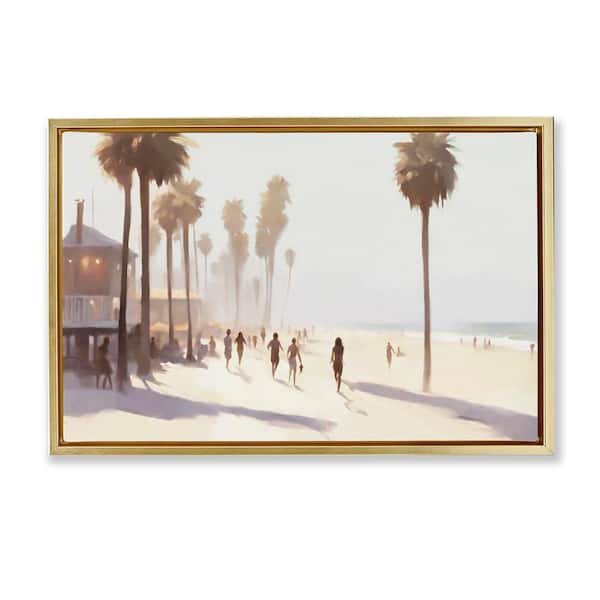 Running on Tropical Beach by Noah Bay Gold Floater Frame Nature Graphic Art Print 21 in. x 31 in.