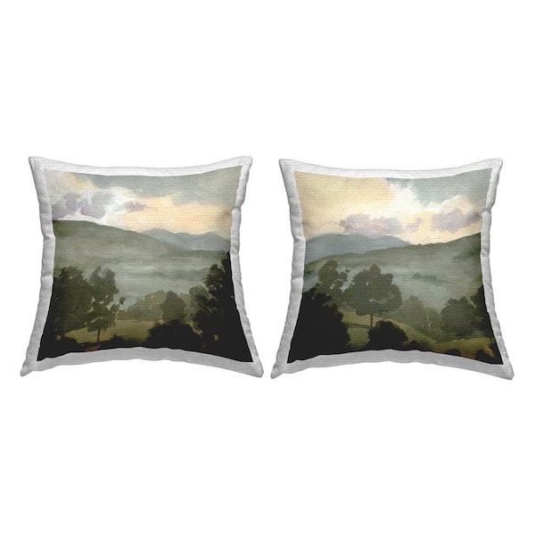 Rural Hills Rustic Landscape Green Square Outdoor Throw Pillow 2-Pack