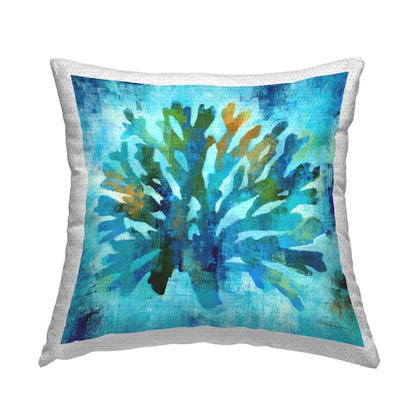 Rustic Blue Aquatic Coral Blue Square Outdoor Throw Pillow