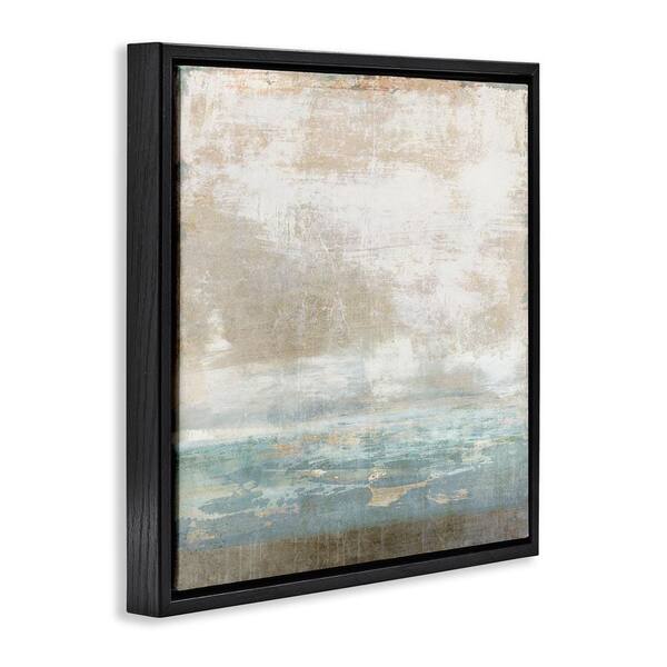 Rustic Blue Beige Ombre by Suzanne Nicoll Black Floater Frame Abstract Graphic Art Print 18 in. x 18 in.