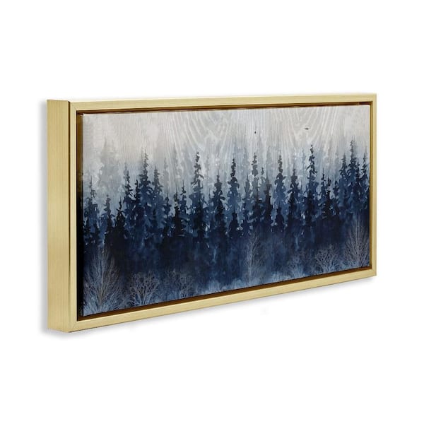 Rustic Blue Forest Tree Line by Carol Robinson 1-Piece Gold Floater Frame Nature Graphic Art print 31 in. x 15 in.