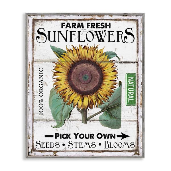 Rustic Farm Fresh Sunflowers by Creatif Belle Gray Framed Nature Giclee Art Print 14 in. x 11 in.