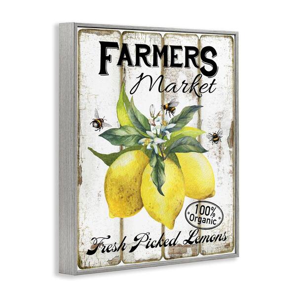 Rustic Farm Market Lemons by Creatif Belle Gray Framed Food Giclee Art Print 30 in. x 24 in.