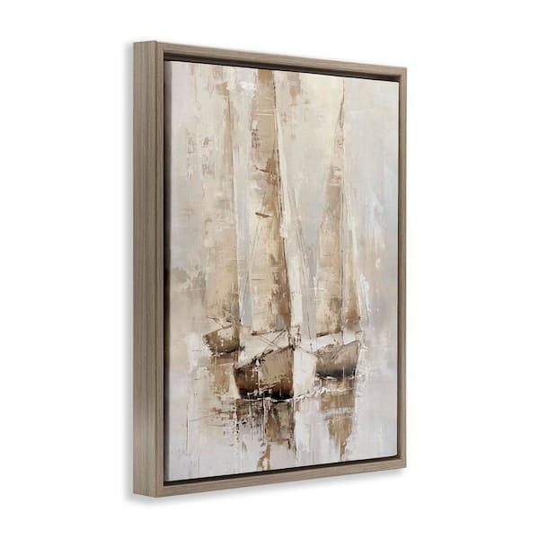 Rustic Gradient Sailboats by Nina Blue Brown Floater Frame Coastal Graphic Art Print 31 in. x 25 in.