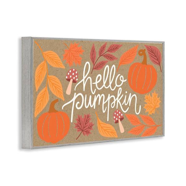 Rustic Hello Pumpkin by Taylor Shannon Designs Gray Framed Nature Giclee Art Print 16 in. x 24 in.