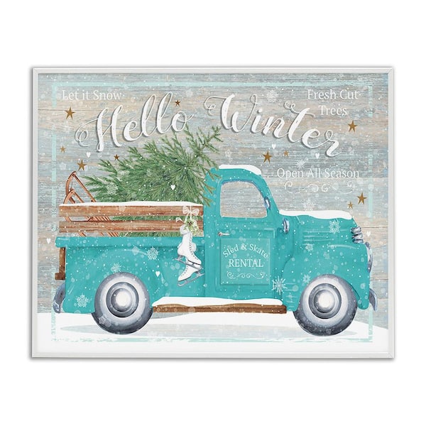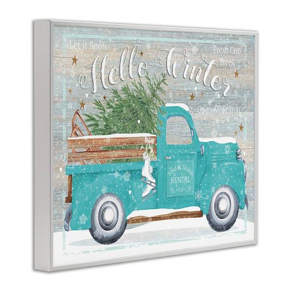 Rustic Hello Winter Truck by Karen Tye Bentley 1-Piece Framed Graphic Print Travel Poster Art Print 14 in. x 11 in.